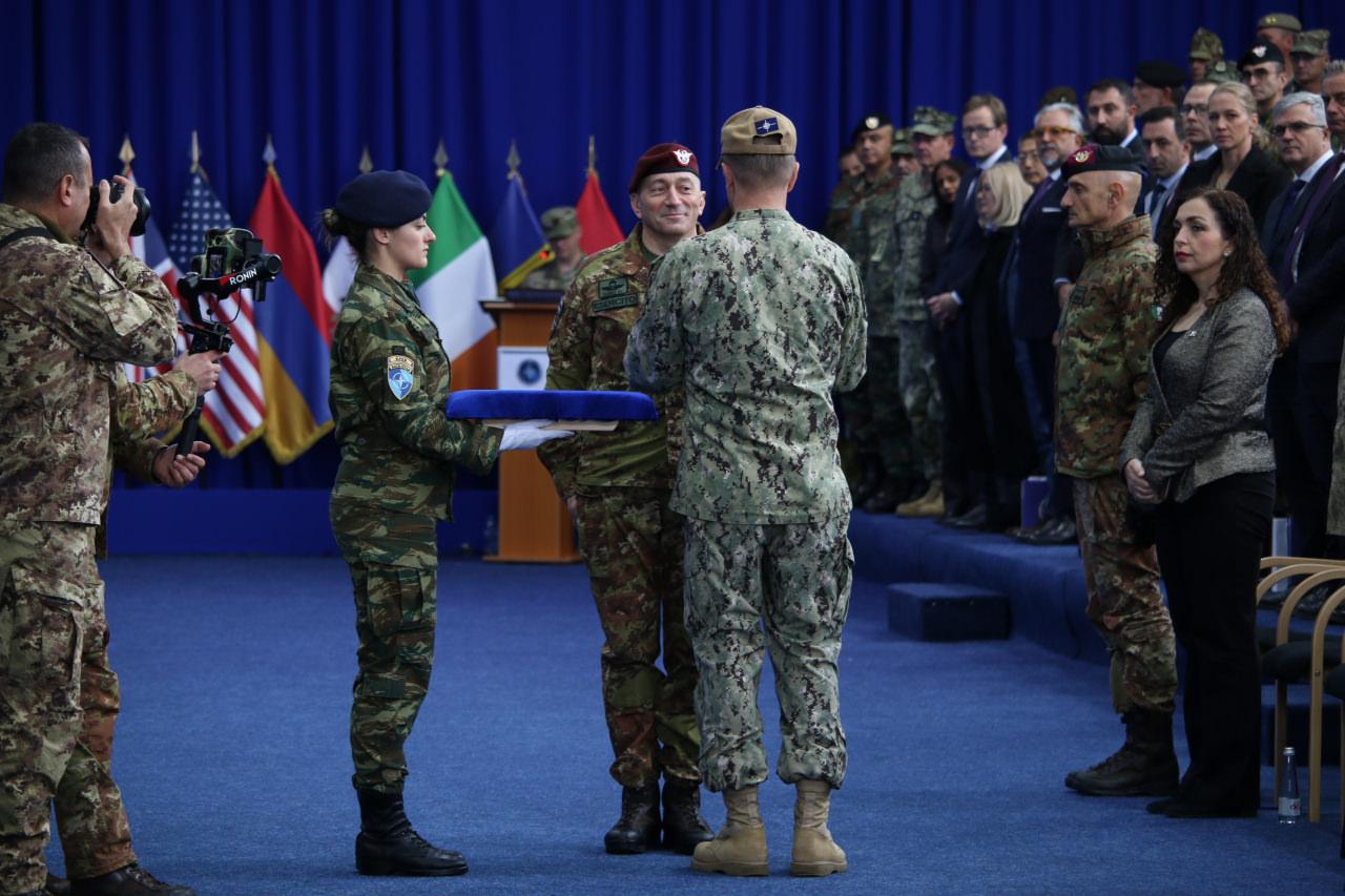 Cumhurbaşkanı Osmani, törende yaptığı konuşmada, KFOR’un yirmi yılı aşkın süredir Kosova ve bölgede barış ve istikrarın temel taşı olduğunu söyledi.