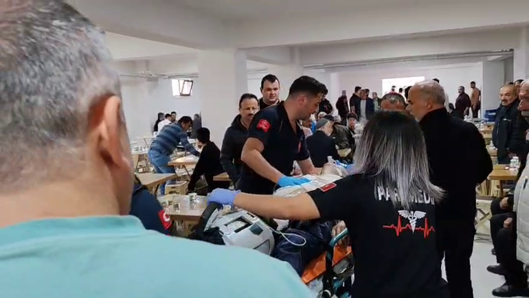 Olay, dün Hıdırşeyhler köyünde düzenlenen ‘Hacet Bayramı’ etkinliğinde meydana geldi. Etkinlikte ikram edilen etli pilavı yerken nefes borusuna et parçası kaçan Sami Ayvaz, fenalaşarak yere yığıldı. Etkinlikteki davetliler tarafından Heimlich manevrası yapılarak et parçası çıkarıldı. Ayvaz’ın nefes almakta güçlük çektiği görülünce durum 112 Acil Çağrı Merkezi’ne bildirildi. İhbar üzerine olay yerine sağlık ekipleri sevk edildi.