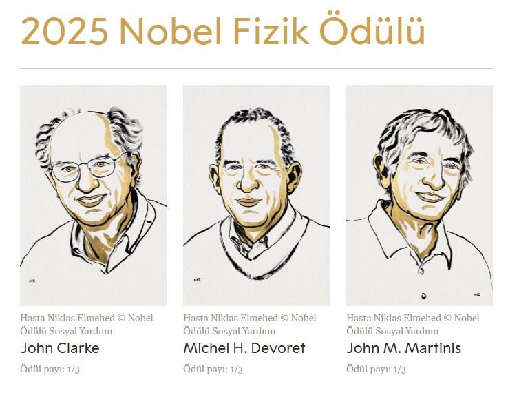 NOBEL FİZİK ÖDÜLÜ SAHİPLERİNİ BULDU7 Ekim 2025'te gerçekleştirilen törende John Clarke , Michel H. Devoret ve John M. Martinis Nobel Fizik Ödüllerinin sahibi oldu.
