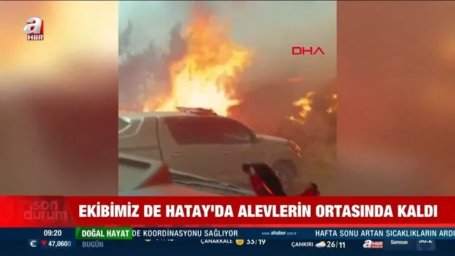 O anlar saniye saniye kamerada! A Haber ekibi Hatay da alevlerin ortasında kaldı