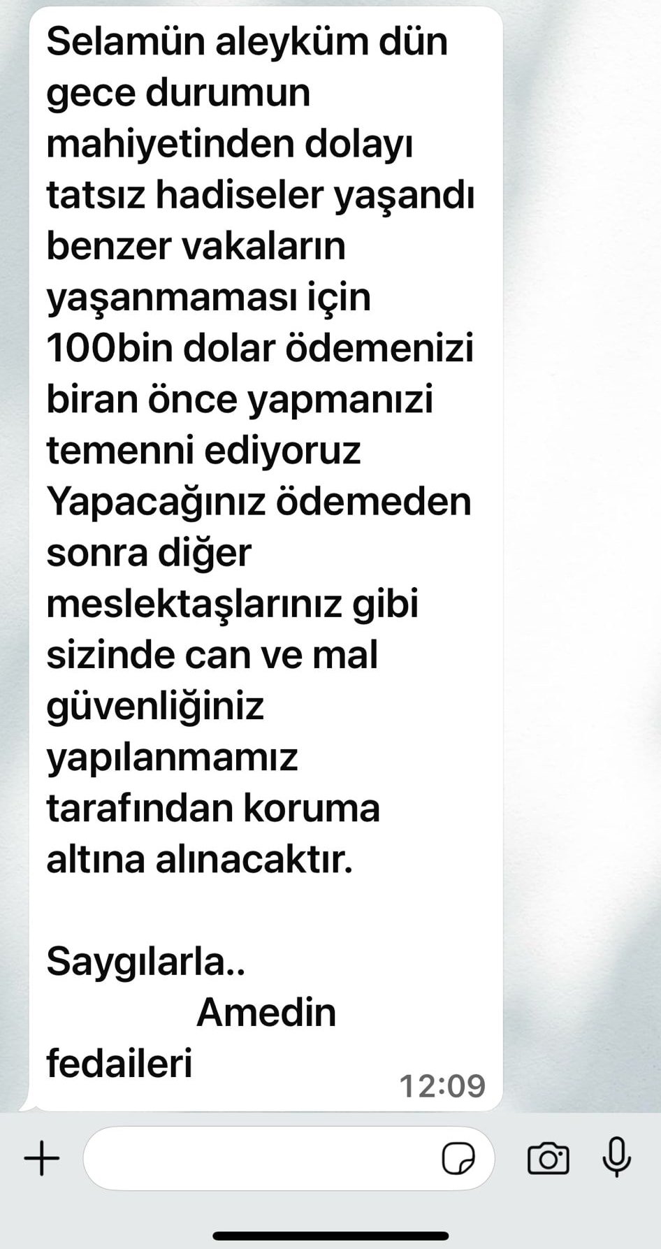 Gece saatlerinde meydana gelen olayda, kimliği belirsiz kişiler tabancalarla kuyumcuya ateş açtıktan sonra kaçtı. Ardından kuyumcuya yabancı numaralardan mesaj gönderen saldırganlar, “Benzer hadiselerin yaşanmaması için 100 bin dolar ödemenizi temenni ediyoruz. Ödeme sonrası diğer meslektaşlarınız gibi can ve mal güvenliğiniz koruma altına alınacaktır” ifadeleriyle tehditte bulundu.