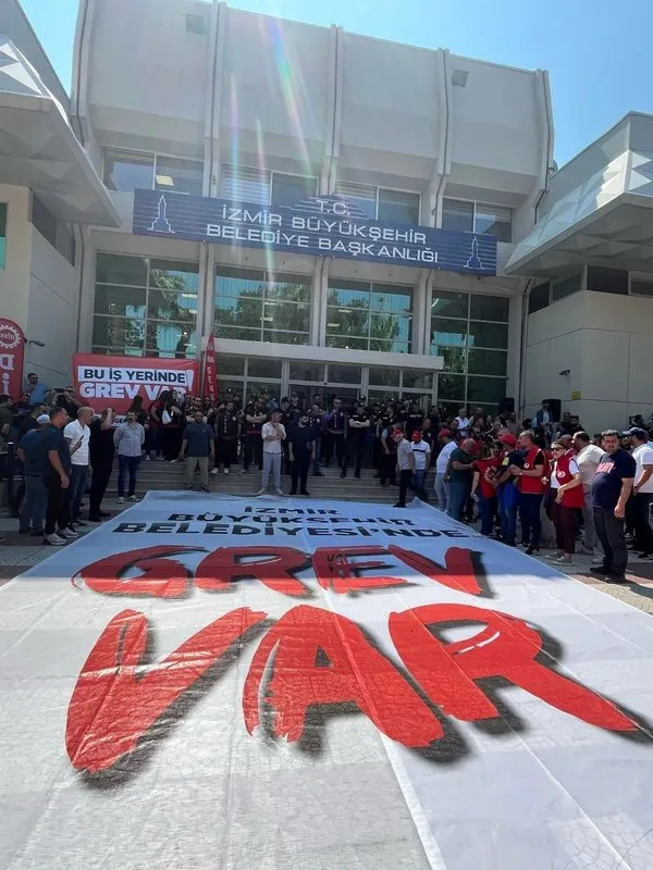 Kent genelindeki birçok belediye hizmeti grev nedeniyle aksarken iş bırakan İzelman, İzenerji ve Ege Şehir Planlama şirketlerinde çalışan yaklaşık 23 bin işçi sabah saat 09.00'da Basmane'deki sendika merkez binası önünde toplandı. Buradan Kültürpark içindeki Belediye Hizmet binası önüne yürüyen işçiler yol boyunca slogan atıp belediye yönetimini protesto etti.