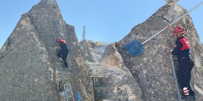 Peribacasında mahsur kaldı! Yaramaz kediyi itfaiye kurtardı