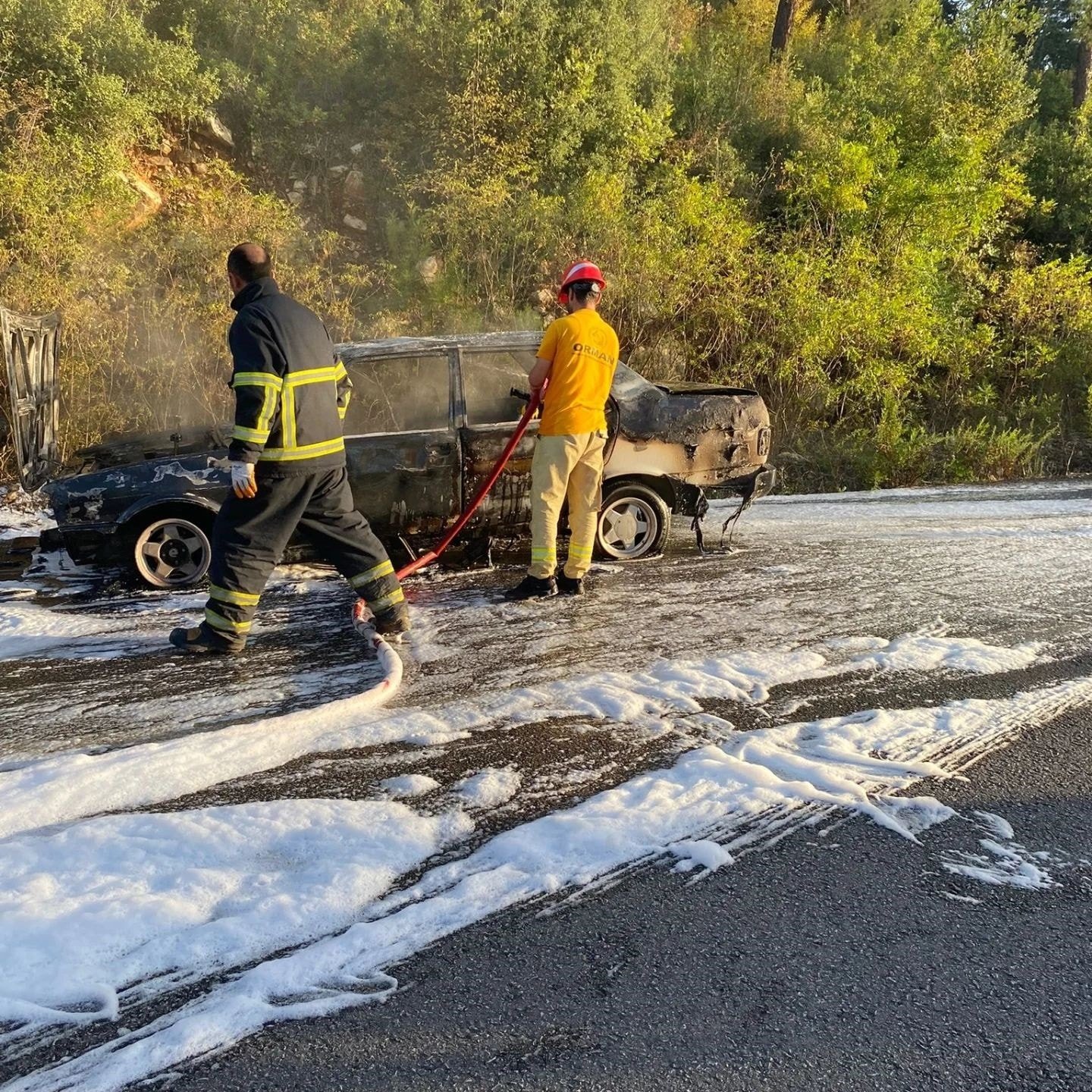 Otomobil bir anda alev aldı, ormana sıçramadan söndürüldü Sözcü Gazetesi