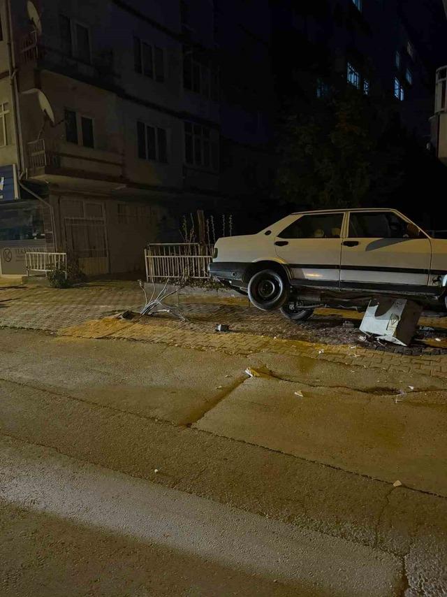 Otomobil trafoya çıktı: Sürücü yara almadan kurtuldu