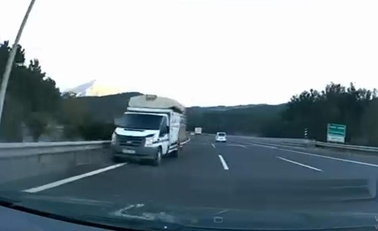 Otoyolda ters yönde ilerleyen kamyonet kamerada