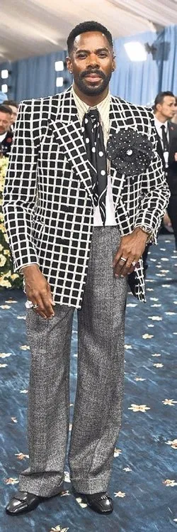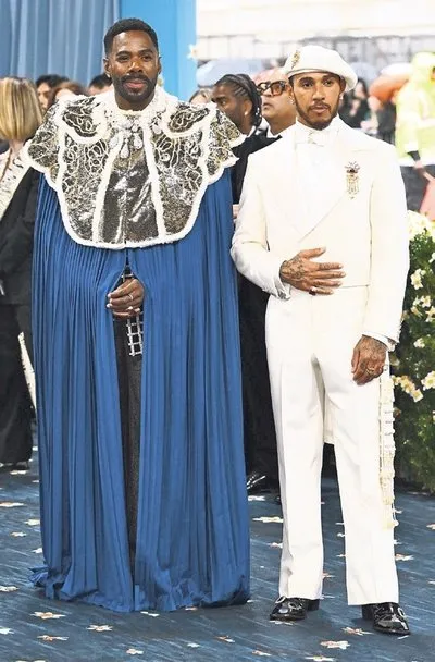 Lewis Hamilton, Wales Bonner imzalı takımıyla gecede temaya en uygun isimlerden biriydi. Kıyafetinin her ilmeği temaya uygun göndermeler içeriyordu. Uzaktan bakınca sade ama detaylara girince zengin bir kostümdü.