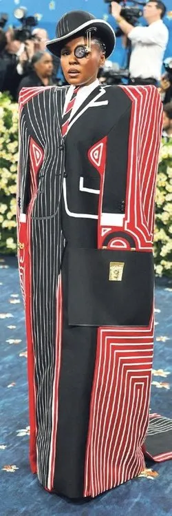 Janelle Monáe, Thom Browne ile gecenin yıldızlarından oldu. Hiç kuşkusuz temayı anlamış ve üzerinde çalışmıştı. İçindeki takımın ipucunu veren bir kabanla giriş yapıp stil dönüşümü geçirdiği anlar keyifli bir görsel şölen yaşattı.