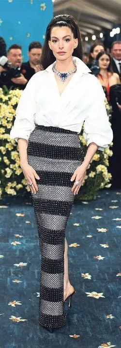 Anne Hathaway, Carolina Herrera kıyafetiyle gecenin en büyük hayal kırıklıklarından biri oldu. Zira temayla en ufak bir alakası olmadığı gibi en demode görünüme sahip olması şaşırttı. Bol karatlı Bvlgari gerdanlığı bile rüküşlüğünü bozmaya yetmedi.
