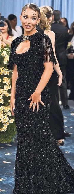 Sydney Sweeney'nin Miu Miu elbisesi kağıt üzerinde referanslara dayansa da bence ilk bakışta temanın yanından bile geçmiyordu. İşin komik yanı ise kıyafetinin temayla uymadığı gibi, ten rengini karartarak siyahilere yaklaşmaya çalışmasıydı. Benim için gecenin en komik hayal kırıklıklarından birine imza attı.