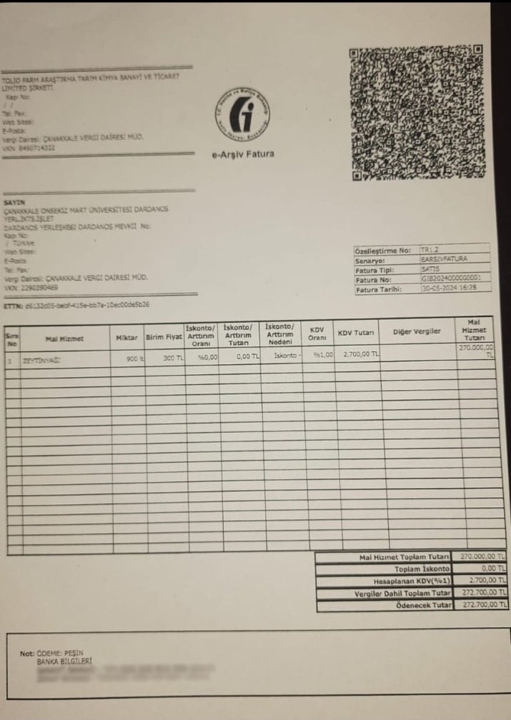 Faturaya bakıldığında da Rektör Cüneyt Erenoğlu’nun, bu iş üzerinden eşinin şirketine 270 bin lira aktardığı görülüyor. Bunun dışında konunun duyulmasının ardından zeytinyağlarının, üniversitenin Dardanos yerleşkesinden taşındığı da öne sürüldü.