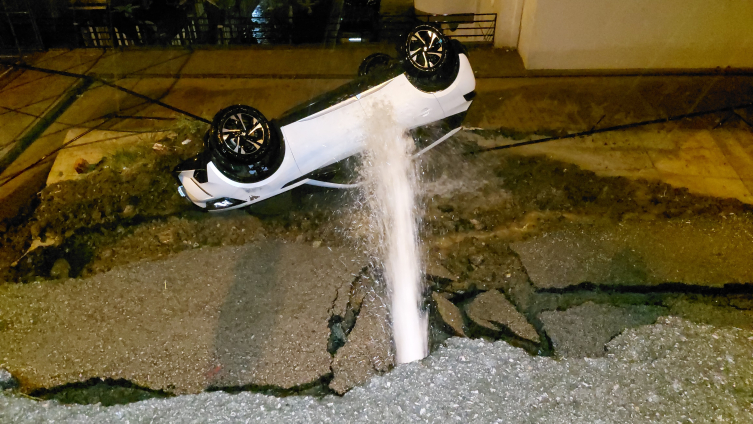 Yolun çökmesi sonucu şebeke suyu da patladı.