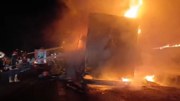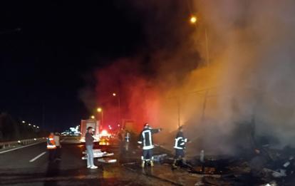 Olay, gece saatlerinde Şanlıurfa- Gaziantep karayolunda meydana geldi. Kent merkezine ilerleyen Faysal Şafak yönetimindeki 52 K 1355 plakalı TIR’ın elektronik eşya yüklü dorsesinde yangın çıktı. Dorseden yükselen alevleri fark eden şoför, aracı yol kenarına çekerek 112 Acil Çağrı Merkezinden yardım istedi. İhbar üzerine bölgeye jandarma, sağlık ve itfaiye ekipleri sevk edildi. İtfaiyenin müdahalesiyle yangın güçlükle kontrol altına alınarak söndürüldü. Alevlerin sardığı TIR’ın dorsesi tamamen kullanılamaz hale gelirken, elektronik eşyalar da kül oldu.