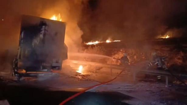 Şanlıurfa da TV yüklü tır alev topuna döndü