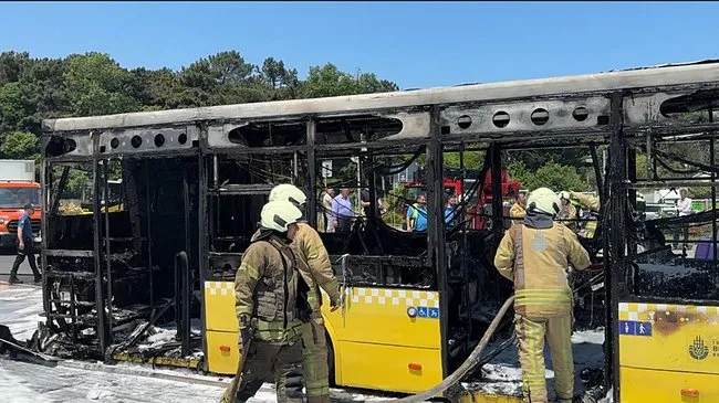 Sarıyer de İETT otobüsü cayır cayır yandı! 25 yolcu tahliye edildi!