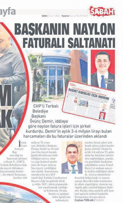 İzmir'de savcılığa başvuran işletmeci CHP'li Torbalı Belediyesi hakkında rüşvet iddialarıyla suç duyurusunda bulunmuştu. Şikayette bir tekstil firmasına kesilen 120 milyon TL cezanın, Belediye Başkanı Övünç Demir'in 10 milyon lira rüşvet karşılığında 60 milyona indirildiğini ayrıca, imar ve yapı kontrol müdürüne de beşer milyon lira rüşvet verildiğini öne sürmüştü. Soruşturma sürerken M.P. isimli kişi Torbalı Cumhuriyet Başsavcılığı'na giderek itirafçı olmuş, Başkan Övünç Demir'in talimatıyla naylon fatura işleri için kendi adına şirket kurduğunu itiraf etmişti. Torbalı Cumhuriyet Başsavcılığı, Başkan Övünç Demir ve memurlar hakkında İçişleri Bakanlığı'ndan soruşturma izni talep etti.