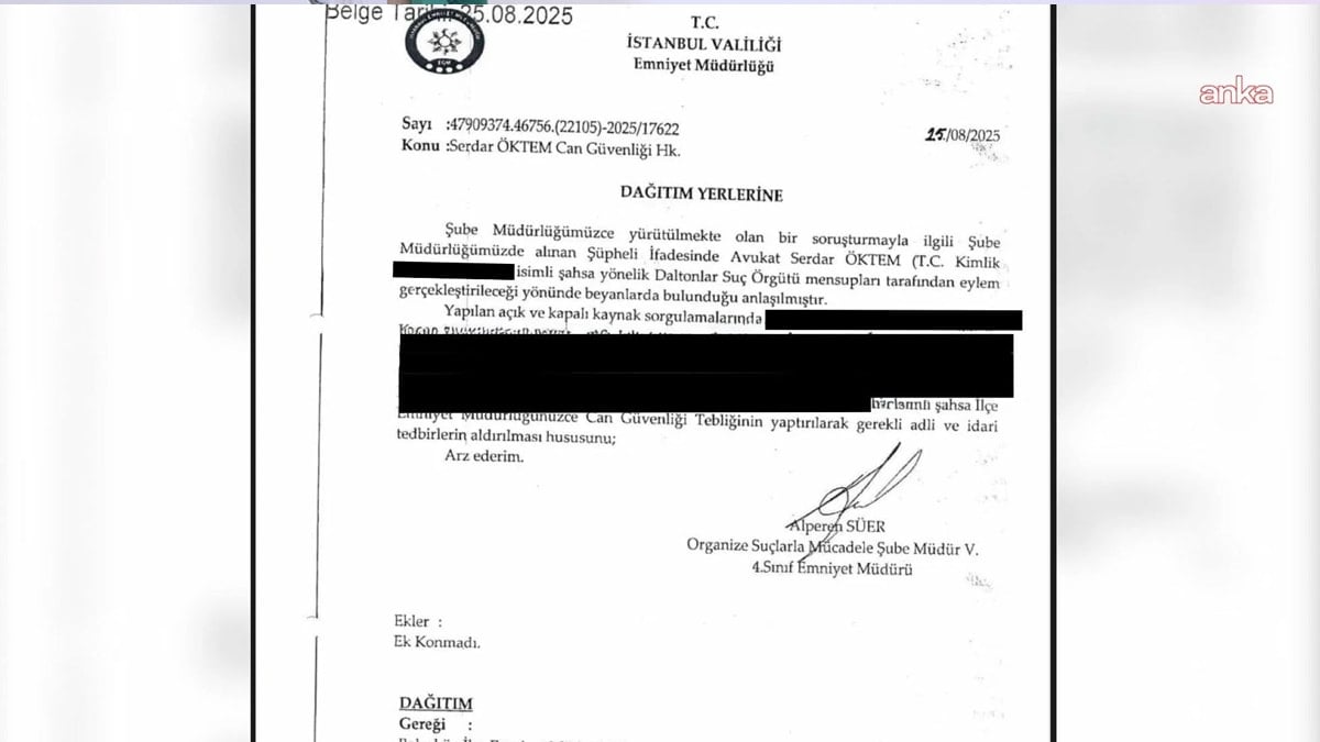 Yayında ayrıca, Serdar Öktem'e de saldırı tehdidinin bildirildiği, 'başvurmadığınız durumda bile müdahale edeceğiz' denildiği belgelere yer verildi.