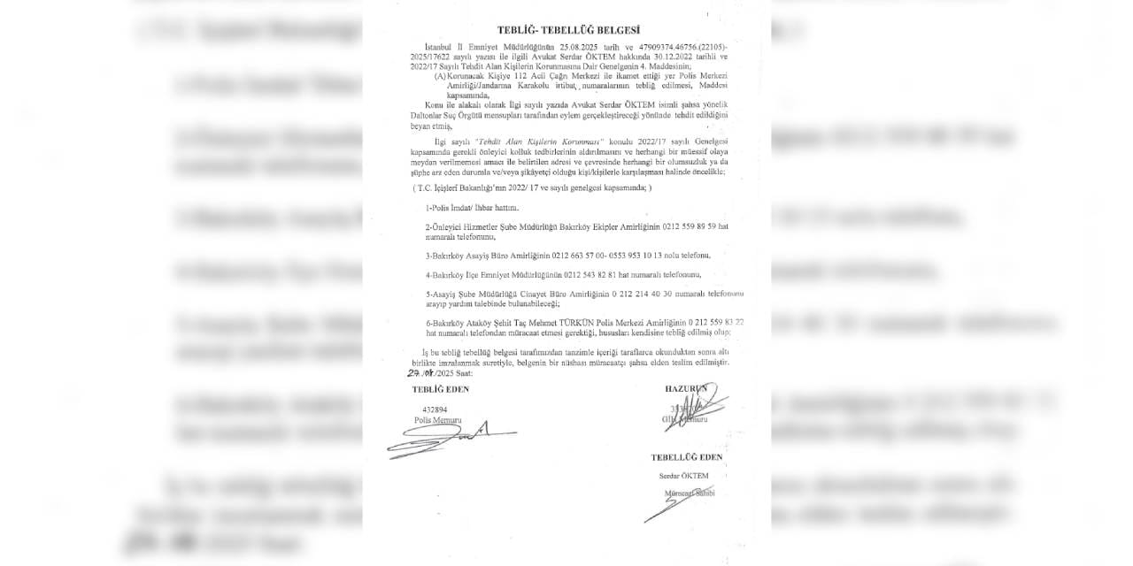 Serdar Öktem'e yönelik suikast ihbarının değerlendirilmesi sürecinde 27 Ağustos tarihli tebliğ tebellüğ belgesinde ise başka soruşturmada ifadesi alınırken, avukat Serdar Öktem'e yönelik, Daltonlar suç örgütü tarafından suikast düzenleneceğini beyan eden şüphelinin beyanına yer verilirken, Öktem'in adresi ve çevresinde herhangi bir olumsuzluk ya da şüphe arz eden durumlarla veya şikayetçi olduğu kişilerle karşılaşması durumunda öncelikle araması gereken numaralar yer aldı. Bunların başında ise 112 Polis İmdat ihbar hattı yer aldı.