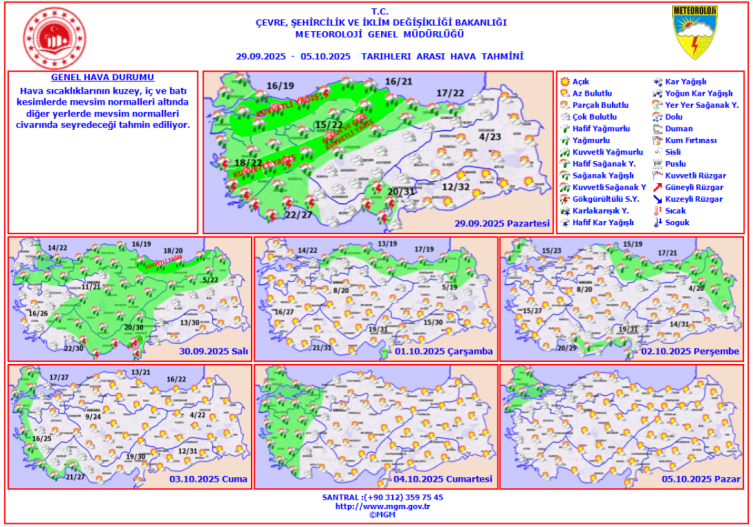 Hava sıcaklığı düşüyor, yağışlar geri dönüyor. Özellikle kuzey kesimlerde sıcaklık, mevsim normallerinin 2 ila 4 derece altına inecek.
