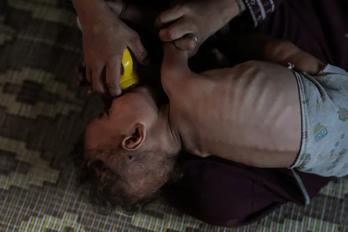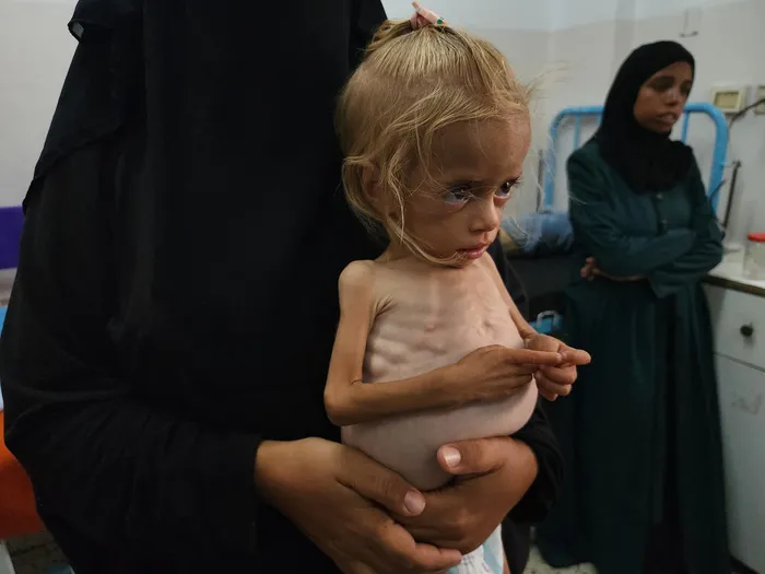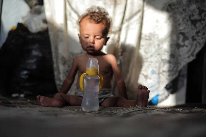 Ömer A.'nın küçük kızı Zeynep, daha bir yaşında. Açlıktan zayıf düşmüş minik elleri, babasının parmaklarına sıkıca sarılı. "Babam ve nenem... İsrail'in saldırılarında şehit oldular. Kız kardeşim, kocası ve bütün çocukları da... Hepimiz gıdadan yoksunuz. Sebzemiz yok, meyvemiz yok.