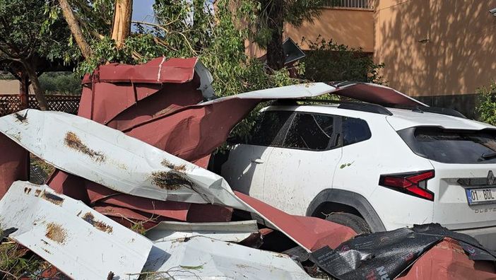 Adana'da fırtına nedeniyle 2 okulun çatısı uçtu, park halindeki araçlar hasar gördü