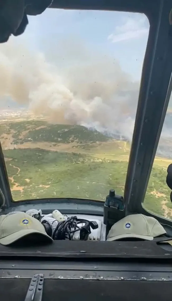 İhbar üzerine bölgeye İzmir Orman Bölge Müdürlüğü'ne ait 2 uçak, 5 helikopter, 20 arazöz, 5 su ikmal aracı ve 1 dozer sevk edildi. Yangına havadan ve karadan müdahale devam ediyor.