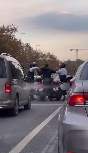 Bir diğer kavga ise 75. Yıl Mahallesi’nde yaşandı. Kırmızı ışıkta duran motosikletli 2 kişi, henüz bilinmeyen bir nedenle tartışmaya başladı. Tartışma kısa sürede kavgaya dönüşürken, çevredeki sürücülerin kimileri kavgayı izledi kimileri ise müdahale ederek kavgayı ayırmaya çalıştı. İki ayrı kavga da cep telefonu kamerasına yansıdı.