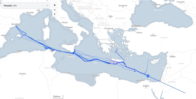 Gazze'ye insani yardım malzemeleri taşıyan ve onlarca gemiden oluşan Küresel Sumud Filosu'nun sosyal medya hesaplarından yapılan paylaşımda, daha önceki gemilerin İsrail saldırısı ve engellemelerine uğradığı bölgeye girdikleri açıklandı. Ayrıca, filonun 'yüksek alarm' durumuna geçtikleri ve gönüllülerin can yeleklerini giydikleri bildirildi.