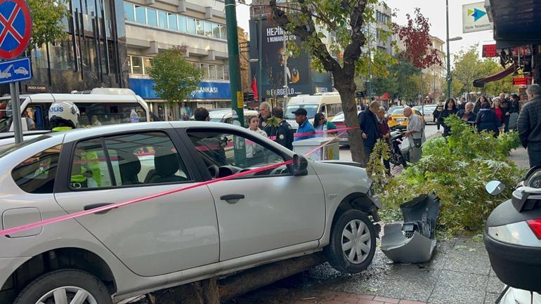 Öte yandan kaza bir iş yerinin güvenlik kamerasına yansıdı. Görüntülerde, otomobil sürücüsünün yayaya çarpmamak için direksiyonu kırdığı ve otomobilin kaldırıma çıkıp ağaca çarptığı görüldü.