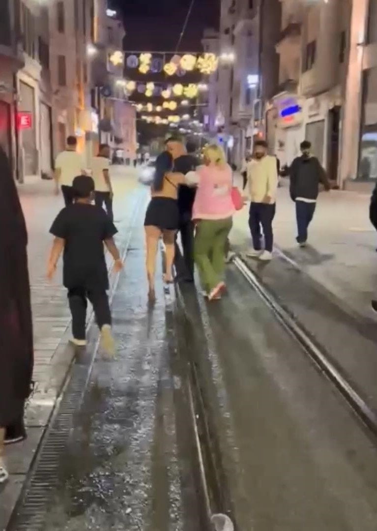 Taksim de laf attın dayağı... İki kadın bir erkeği evire çevire dövdü Sözcü Gazetesi
