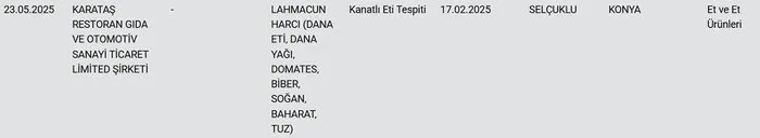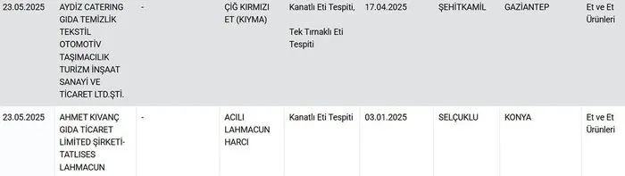 Bakanlığın açıkladığı listede sadece kırmızı et değil, lahmacun ve döner gibi hazır gıda ürünlerinde de yanıltıcı uygulamalar dikkat çekti. Bazı firmaların lahmacun iç harcında kanatlı eti kullanarak, tüketiciyi bilgilendirmeden farklı türde et kullandığı ortaya çıktı.