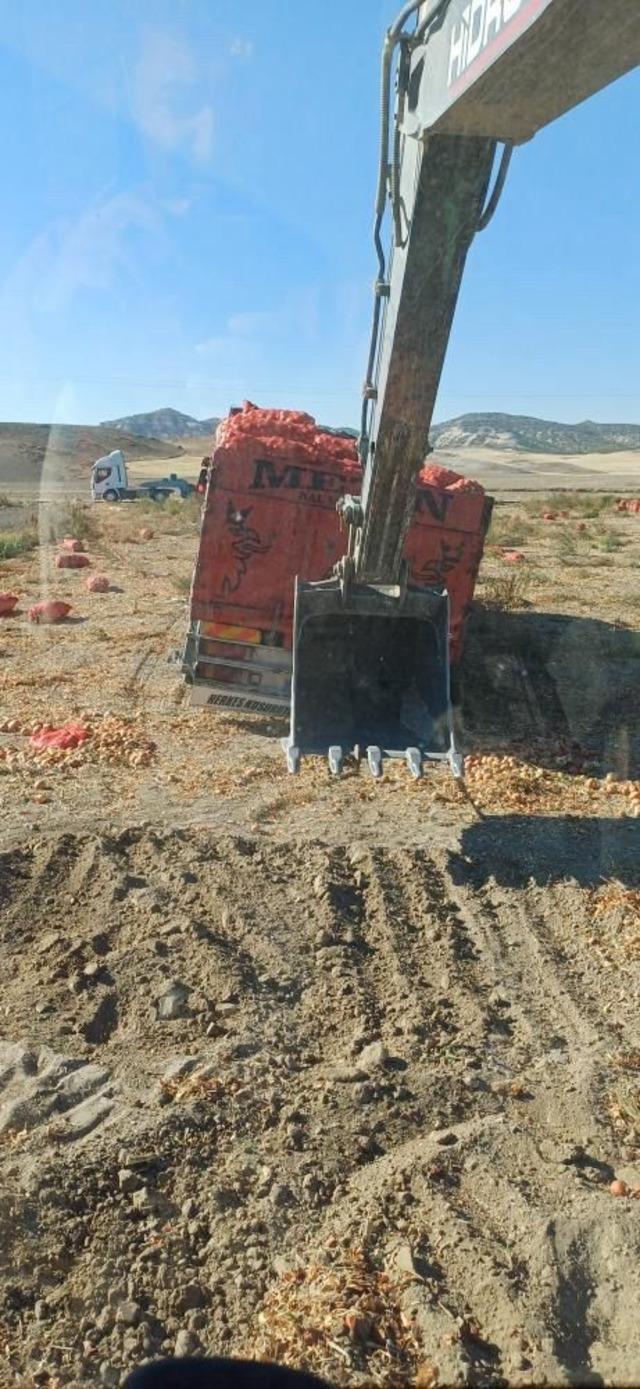 Tonlarca soğan taşıyan tır ıslak arazide toprağa gömüldü