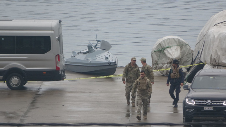 Çarşıbaşı ilçesi açıklarında önceki gece hamsi avına çıkan balıkçılar tarafından fark edilerek vinç ile Yoroz Limanı’na çekilen cismin, yapılan incelemeler sonrası menşei belirsiz insansız deniz aracı olduğu belirlendi.
