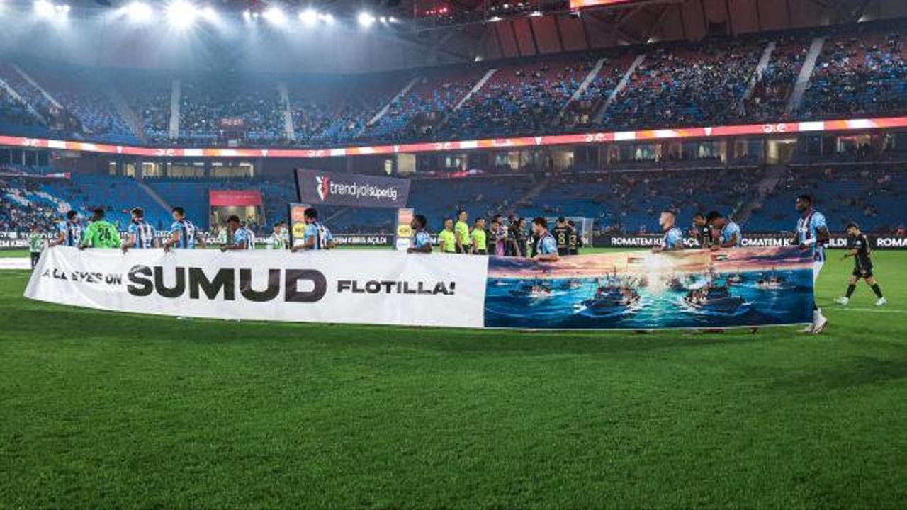 Bordo-mavili taraftarlar, kale arkasına "Gazze’de hayat var, vicdanlarda sızı" ve “Sumudumuz Gazze’ye” yazılı pankartlar astı. Trabzonsporlu futbolcular da sahaya "All Eyes Sumud Flotilla (Tüm Gözler Sumud Filosu'nda) " yazılı pankart ile sahaya çıktı.
