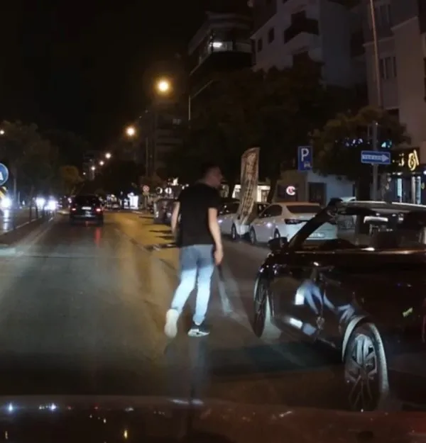 Olay, saat 21.30 sıralarında Karşıyaka ilçesi Girne Caddesi'nde meydana geldi. İddiaya göre, trafikte seyir halinde olan 35 CKG 604 plakalı spor otomobilin sürücüsü E.M., aynı yönde ilerleyen bir motosiklet sürücüsü ile tartıştı. Tartışma sırasında otomobil sürücüsü, aracında kılıf ile muhafaza ettiği döner bıçağını çıkartarak tartıştığı kişilerin üzerine yürüdü. Olayı gören çevredekiler araya girerken, motosiklet sürücüsünün bölgeden ayrılması sonrasında kavga sona erdi. E.M., olaydan kısa süre sonra Karşıyaka İlçe Emniyet Müdürlüğü ekipleri tarafından yakalanarak gözaltına alındı.