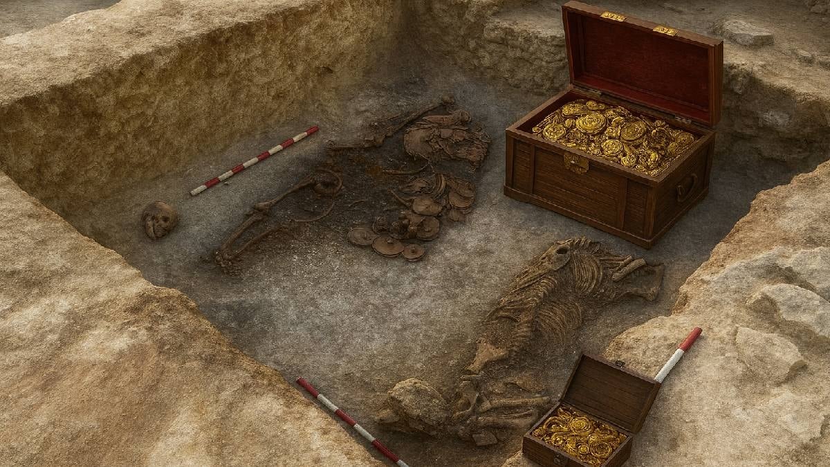 35-40 yaşlarında olduğu belirlenen savaşçı, demir mızraklar, kalkan, gümüş takılar, mücevherler, değerli taş işlemeli bir bıçak ve seramik kaplarla birlikte gömülmüştü. Mezarın en dikkat çeken buluntularından biri ise savaşçının atı oldu. Bronz süslemeler, yaldızlı koşum takımları ve yılan motifli alınlıkla gömülen at, sahibinin statüsünü simgeliyordu.