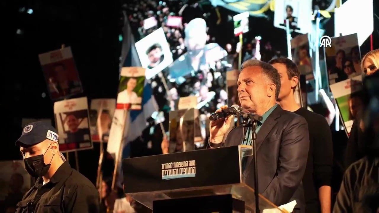 İsrailli esirlerin yakınlarının "Esirler Meydanı" adı verilen meydanda düzenlediği gösteriye katılan Witkoff, uzun süren alkışlar nedeniyle konuşmasına başlayamadı.