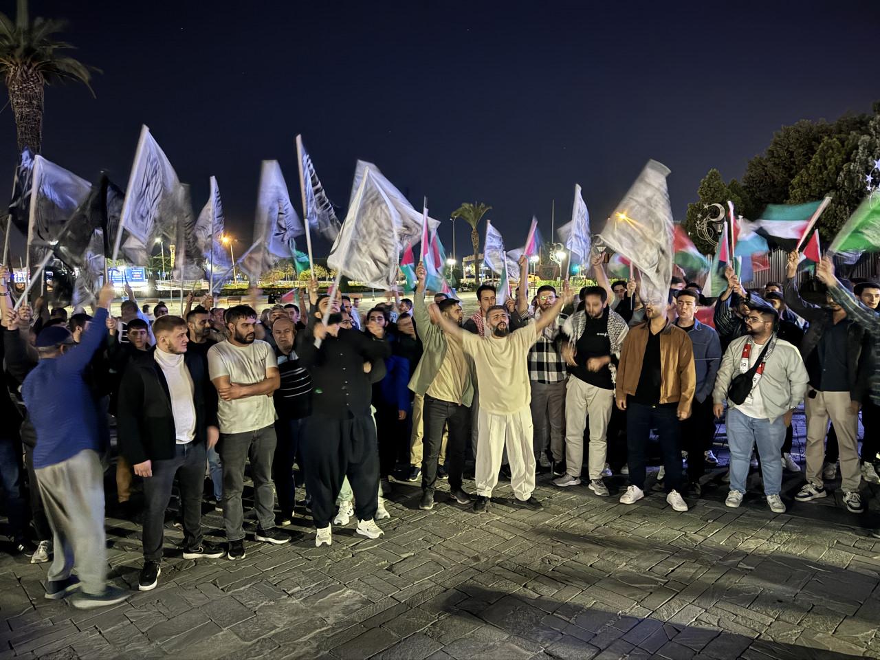 Ellerinde Türk ve Filistin bayrağı taşıyan grup, slogan atıp İsrail'e tepki gösterdi.
