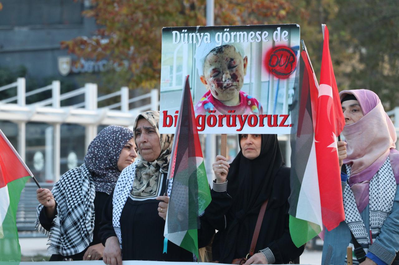 Türk ve Filistin bayrakları taşıyan vatandaşlar, tekbir getirip dua etti.