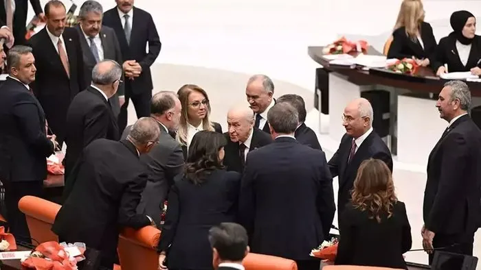 Kısa bir süre sonra tekrar Bahçeli'den dikkat çeken bir çağrı daha geldi. Bahçeli, "İmralı'yla Dem grubu arasında yüz yüze temasın gecikmeksizin yapılmasını bekliyoruz." diye seslendi.