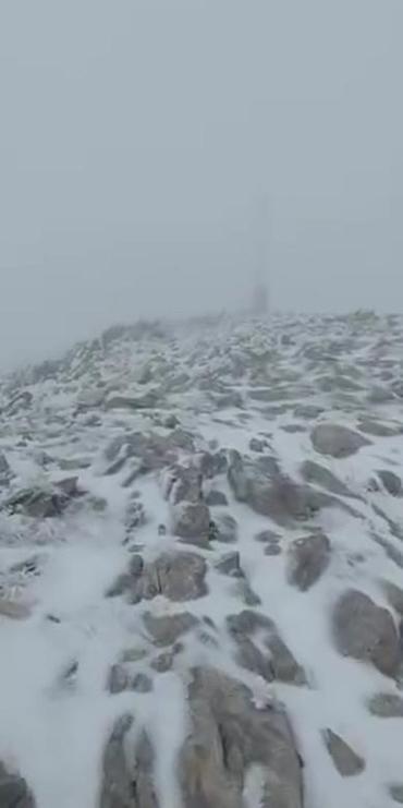 Uludağ'da etkili olan yağmur, dün sabah saatlerinden itibaren yerini kara bıraktı. Hava sıcaklığının en yüksek 5, en düşük 2 derece olarak ölçüldüğü Uludağ'da yağış, karla karışık yağmur şeklinde gün boyu devam etti. Kar yağışı gece aralıklarla sürerken, 2 bin 543 rakımlı zirve beyaza büründü. Dağcılar, kar yağışını zirveye tırmanıp, kar üstünde kahve pişirerek kutladı.