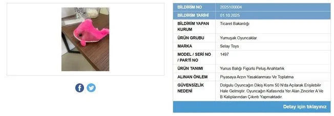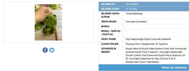 Ticaret Bakanlığı, Güvensiz Ürün Bilgi Sistemi (GÜBİS) üzerinden yürüttüğü denetimlerde çocuk sağlığı açısından riskli bulunan ürünleri kamuoyuyla paylaşmaya devam ediyor.