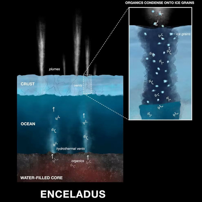 O veriler, sonda kontrollü şekilde Satürn’e düşerek görevini sonlandırdıktan yıllar sonra yeniden incelendi. Bilim insanları, söz konusu buz tanelerinde önceden Satürn’ün E halkasında tespit edilenlerle aynı ya da çok benzer organik moleküller buldu. Bu da, bileşiklerin uzayda tesadüfi kimyasal süreçlerle değil, doğrudan Enceladus'un yeraltı okyanusunda oluştuğunu gösteriyor.
