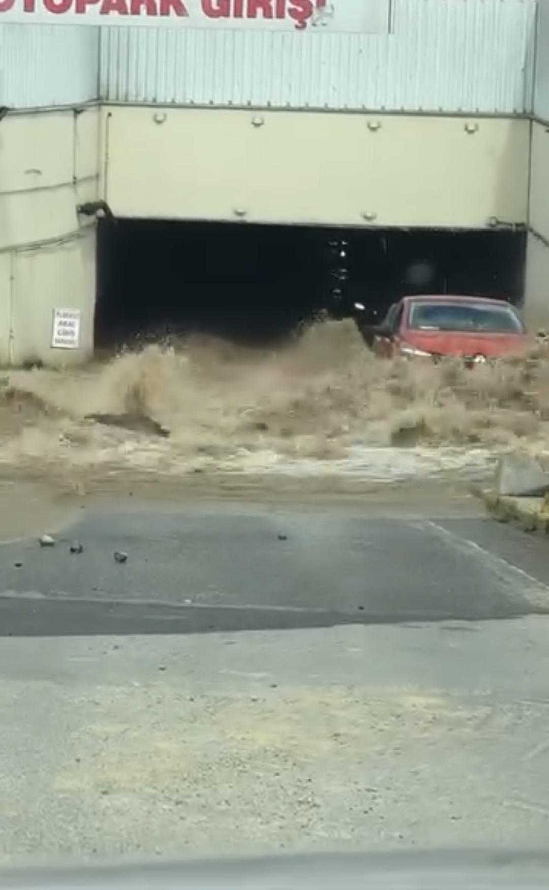 Borunun patlamasıyla caddeye akan su, alışveriş merkezinin otoparkına doldu. Göle dönen otoparkta bulunan sürücüler, hızla yükselen su nedeniyle araçlarını çıkarmakta güçlük çekti. Bazı sürücüler araçlarını güçlükle otoparktan çıkarmaya çalıştı.